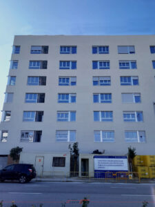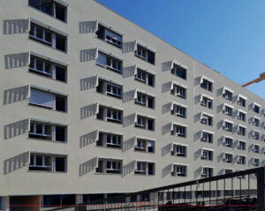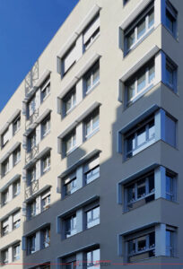 Nuestros trabajos abarcaron desde la fabricación e instalación de los precercos de hierro, hasta la fabricación y montaje de los parasoles de aluminio en la fachada exterior, así como la fabricación e instalación completa de la carpintería de aluminio.